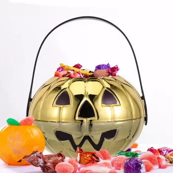 Golden Pumpkin Candy Basket – Large Capacity Trick-or-Treat Holder