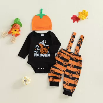 Baby Halloween Outfit 3Pcs Set Romper Pumpkin Pants & Hat