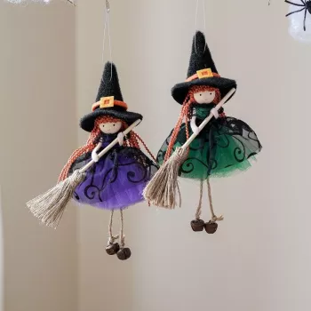 Hanging Broom Girl Angel Pendant for Halloween Decor
